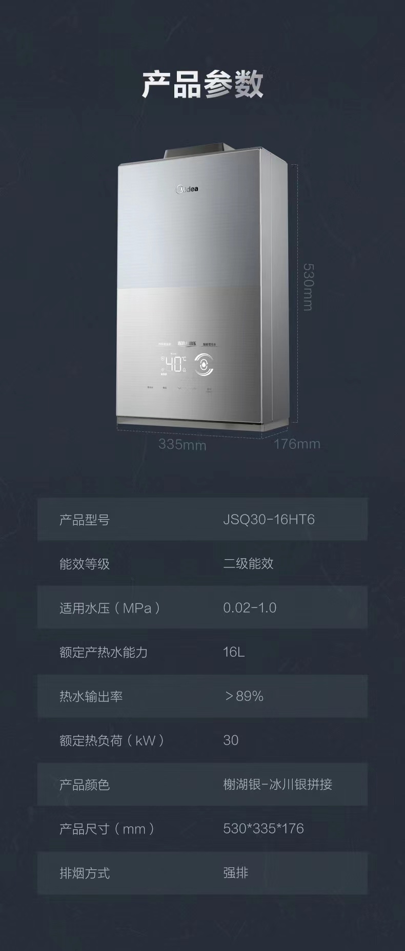 美的 JSQ30-16HT6 恒温式燃气热水器 钛钢灰